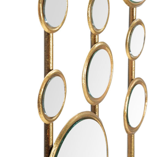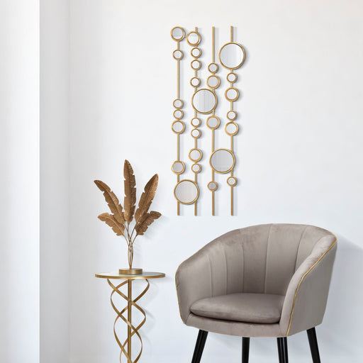 Panou decorativ 3D auriu cu design geometric compus dintr-un set de oglinzi rotunde de diferite dimensiuni. Stil: Glam Culoare: Aur Material: Fier ...