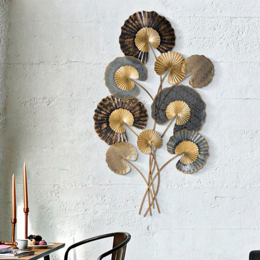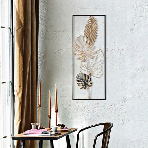 IDEACASAPanou decorativ 3D de perete compus dintr -un set de frunze fin sculptate STIL: GLAM CULOARE: MULTICOLOR MATERIAL: FIER DIMENSIUNI: 85X63X4