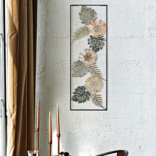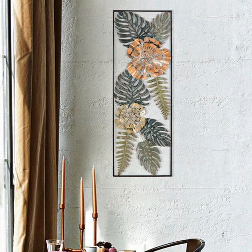 IDEACASAPanou dreptunghiular din metal si mdf cu frunze. Panourile 3D sunt noua tendinta de a decora peretii. Imagini vintage pentru a oferi o atmosfera fe...