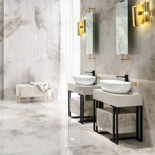 TUBADZINGresie/Faianta Onice Bianco finisaj: pol dimensiune gresie :119.5x119.5/1.43mp/cutie dimensiune gresie :119.5x239.8cm /2.88mp/cutie Pret afisat p...