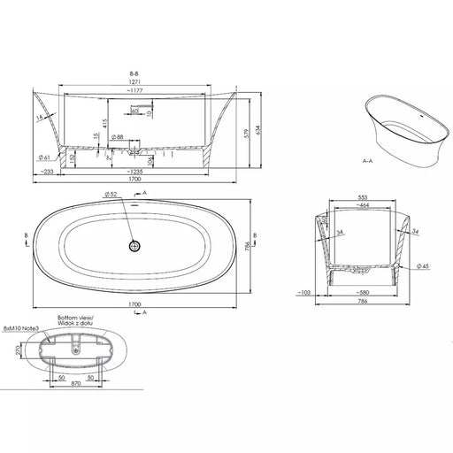 Cadă Freestanding Syros – Compozit Alb Premium 170x79 cm