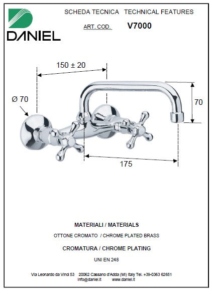 Baterie bucatarie daniel rubinetterie made in italy revival v7000 FINISAJ:LUCIOS CULOARE:CROM