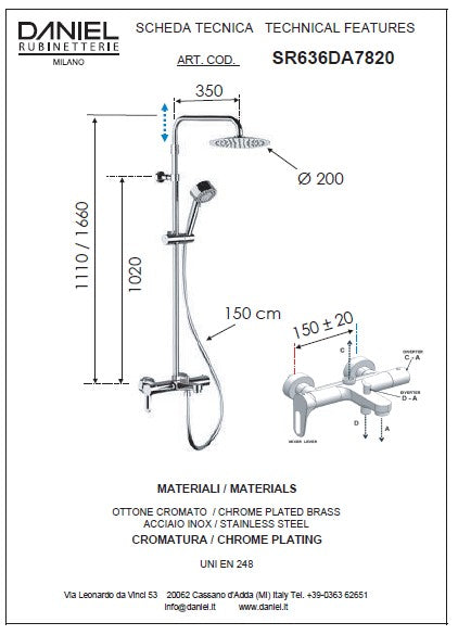 Baterie cada coloana made in italy smart sr636da7820   FINISAJ:LUCIOS CULOARE:CROM ACCESORII :FURTUN, PARA DUS,SUPORT DUS,