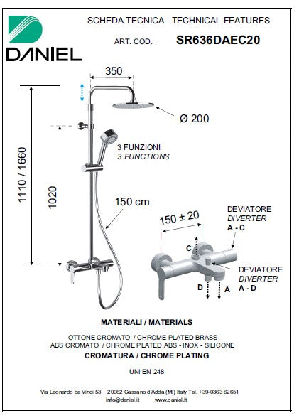 Baterie cada daniel rubinetterie made in italy revival v4192    FINISAJ:LUCIOS CULOARE:CROM ACCESORII :FURTUN DUS,PARA DUS,