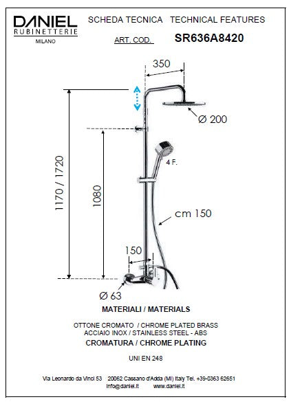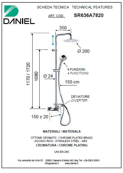 Baterie cada coloana made in italy reflex rx636da3cpsd20 FINISAJ: LUCIOS CULOARE:CROM ACCESORII :FURTUN, PARA DUS,SUPORT DUS,IN INOX  DIAMETRU PAL...
