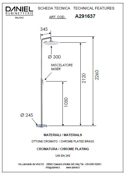 BATERIE DUS EXTERIOR PISCINA SUVI A291637 FINISAJ:LUCIOS CULOARE:CROM