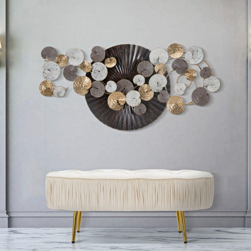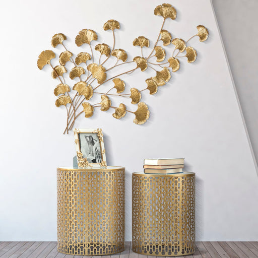 IDEACASAPanou decorativ 3D din metal auriu cu forma geometrica si decoratiuni care amintesc de frunze si natura. Un plus de clasa pentru orice camera. Stil...