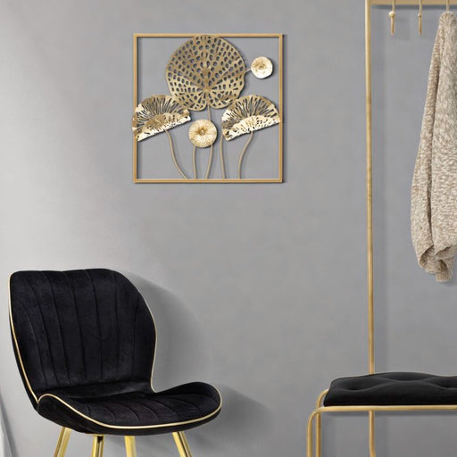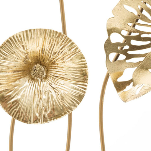 IDEACASAPanou decorativ 3D din metal auriu ilustrând flori inchise intr-un cadru. Designul aminteste de natura, iar manopera ofera o nota de luminozitate o...