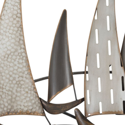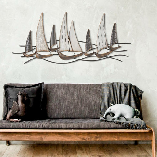 IDEACASAPanou decorativ metalic 3D care infatiseaza un grup de barci cu vele. Designul aminteste de libertate si briza marii. Stil: Glam Culoare: Multicolo...