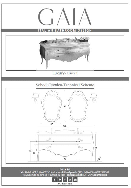 Mobilier baie clasic Tristan laccato 175x62cm Gaia Mobili Italy