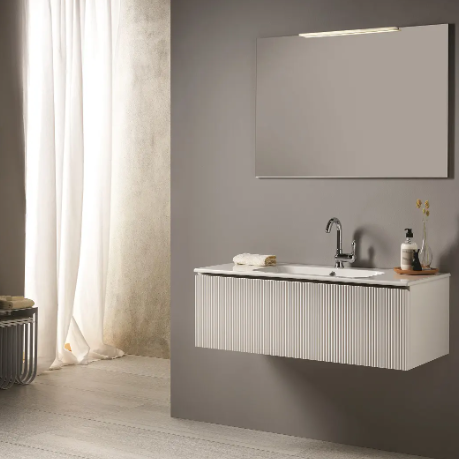 Mobilier baie contemporan Wave 105x50xh 35 cm Gaia Mobili Italy cod baza mobilier :BA.10535LC culoare: Laccato Opaco RAL cod lavoar ceramic :QUBO1...