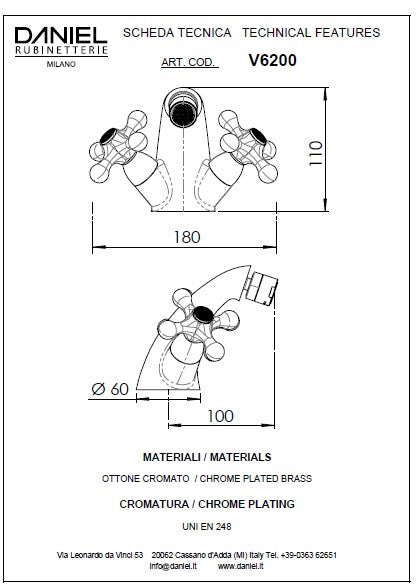 DANIELBaterie bideu daniel rubinetterie made in italy revival v6200 FINISAJ:LUCIOS CULOARE:CROM ACCESORII :VENTIL