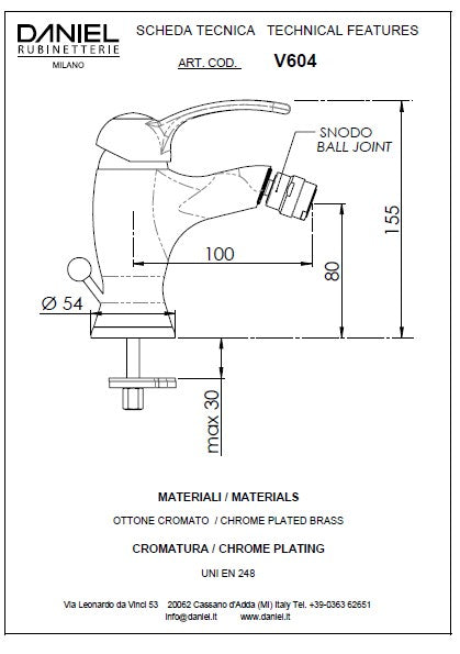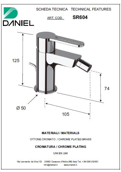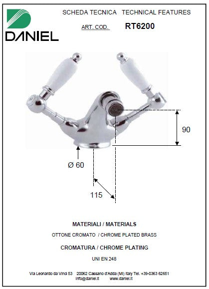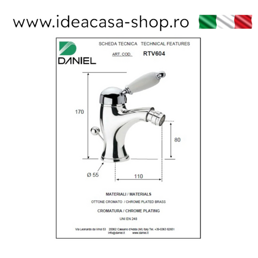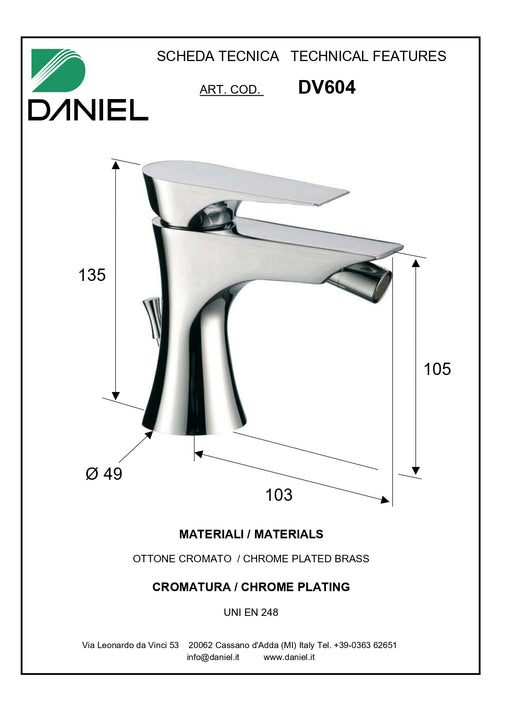 DANIELBaterie bideu daniel rubinetterie made in italy revival v604 FINISAJ:LUCIOS CULOARE:CROM ACCESORII :VENTIL