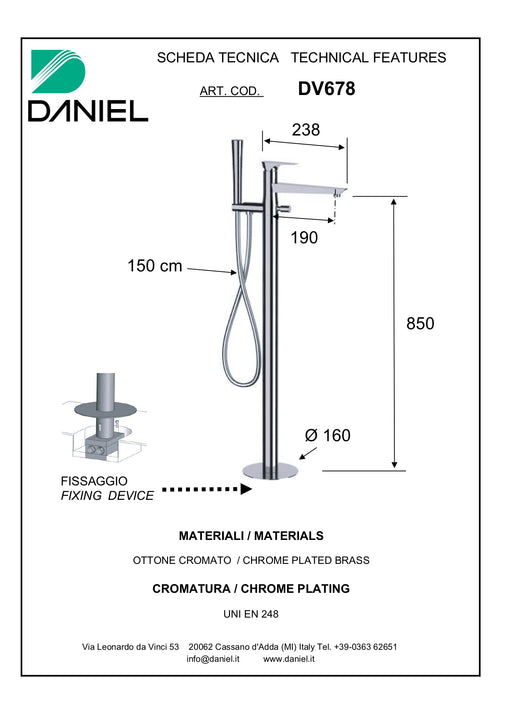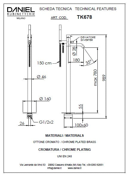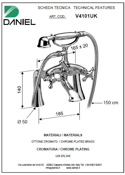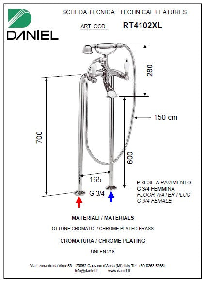DANIELBaterie cada pardoseala made in italy retro rt4102xl FINISAJ:LUCIOS CULOARE:CROM ACCESORII :FURTUN, PARA DUS,SUPORT DUS,