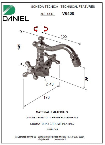 DANIELBaterie bideu daniel rubinetterie made in italy revival v6400 FINISAJ:LUCIOS CULOARE:CROM ACCESORII :VENTIL