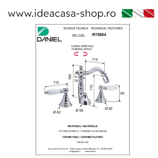 DANIELBaterie bideu made in italy retro rt6004 FINISAJ:LUCIOS CULOARE:CROM ACCESORII :VENTIL