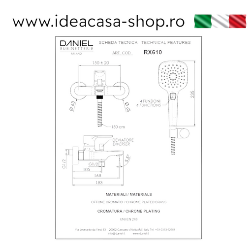 DANIELBaterie cada made in italy reflex rx610 FINISAJ:LUCIOS CULOARE:CROM ACCESORII :FURTUN, PARA DUS,SUPORT DUS,