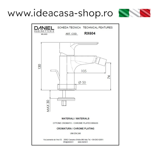 DANIELBaterie bideu daniel rubinetterie made in italy diva dv604 FINISAJ:LUCIOS CULOARE:CROM ACCESORII :VENTIL