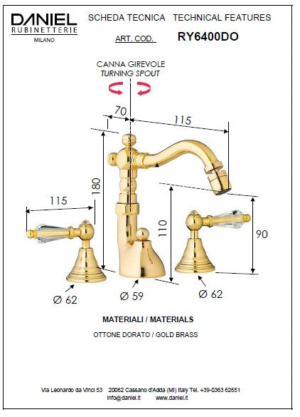 DANIELBaterie bideu daniel rubinetterie made in italy cy6200do FINISAJ:LUCIOS ACCESORII :VENTIL