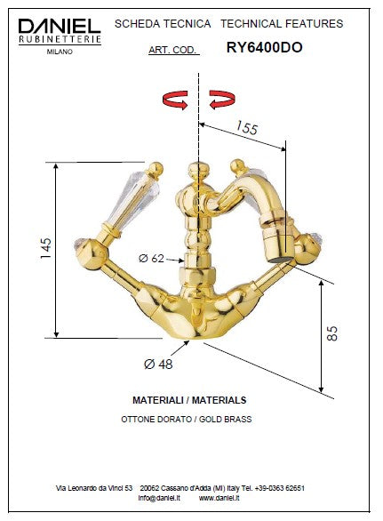 DANIELBaterie bideu made in italy crystal retro ry6200do FINISAJ:LUCIOS CULOARE:CROM ACCESORII :VENTIL