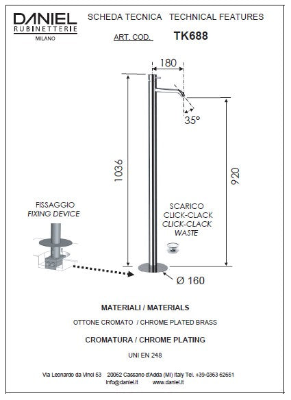 DANIELBATERIE LAVOAR INALTA AMBITION AI607 FINISAJ:LUCIOS CULOARE:CROM ACCESORII :VENTIL