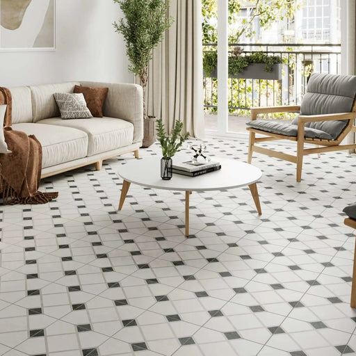 Gresie Faianta Hexagonala Osaka - Alb Negru Charcoal 28x33cm - Portelanat Mat Spania