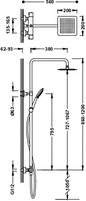 Baterie Duș Termostatică TRES Moderna 200mm 2738704