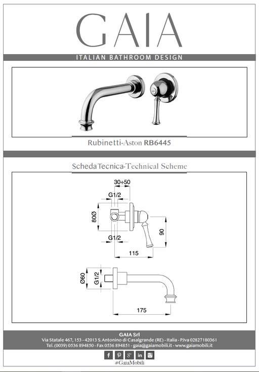 GAIABaterie lavoar perete aston made in italy gaia rb6445 FINISAJ:LUCIOS CULOARE:CROM ACCESORII :VENTIL