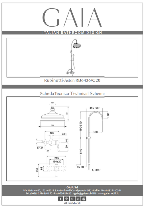 GAIABaterie dus coloana princeton made in italia gaia rn800/d20 FINISAJ:LUCIOS CULOARE:CROM ACCESORII :FURTUN, PARA DUS,SUPORT DUS,