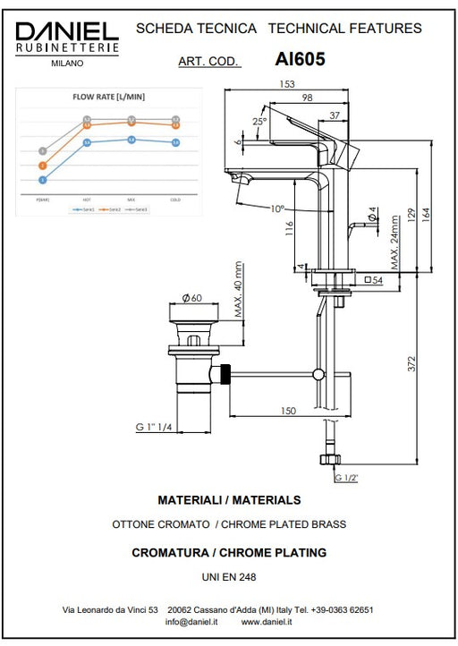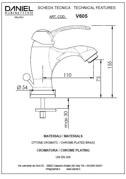 DANIELBaterie lavoar daniel rubinetterie made in italy revival v605 FINISAJ:LUCIOS CULOARE:CROM ACCESORII :VENTIL
