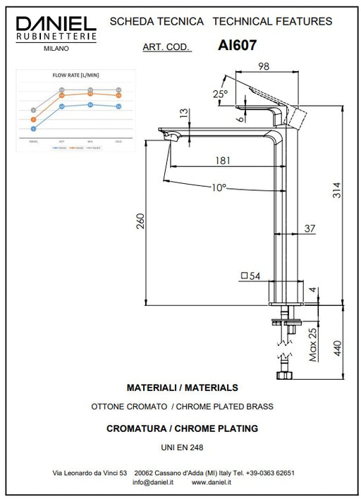 DANIELBATERIE LAVOAR INALTA AMBITION AI607 FINISAJ:LUCIOS CULOARE:CROM ACCESORII :VENTIL