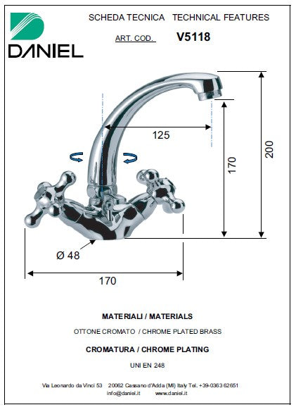 DANIELBaterie lavoar daniel rubinetterie made in italy revival v5118 FINISAJ:LUCIOS CULOARE:CROM ACCESORII :VENTIL