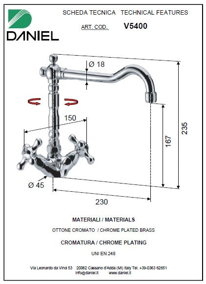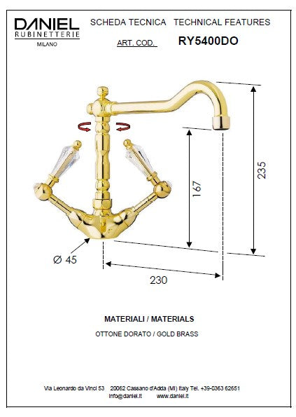 DANIELBaterie lavoar daniel rubinetterie made in italy revival v5400 FINISAJ:LUCIOS CULOARE:CROM ACCESORII :VENTIL