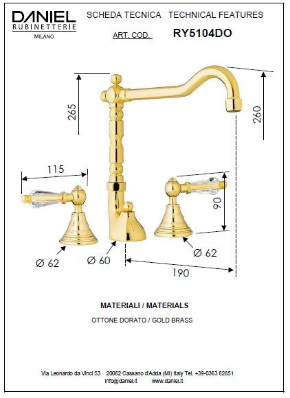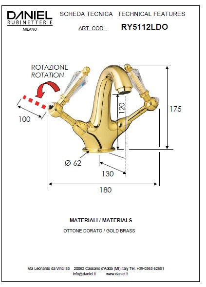 DANIELBaterie lavoar daniel rubinetterie made in italy crystal cy5112do FINISAJ:LUCIOS ACCESORII :VENTIL