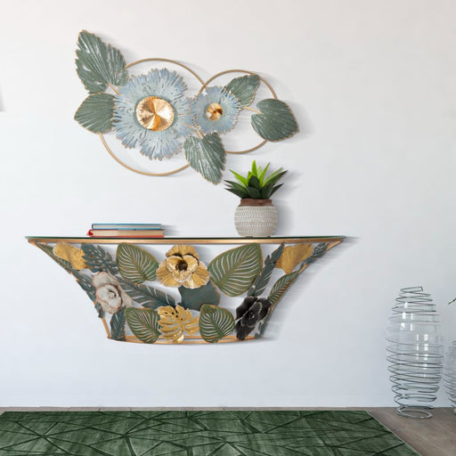 Consolă de Perete Decorativă Amaz 120x40.5x37.2 cm - Design Glam cu Finisaj Auriu și Blat din Sticlă
