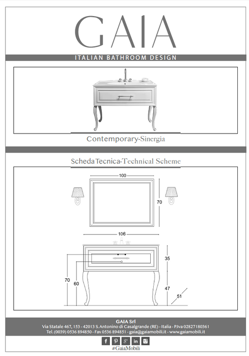 GAIAMobilier baie style Boutique 90 91x51cm Gaia Mobili Italy cod baza mobilier :BAboutique90LC culoare: lacato cod lavoar : Worktop91matt+sopra58matt...
